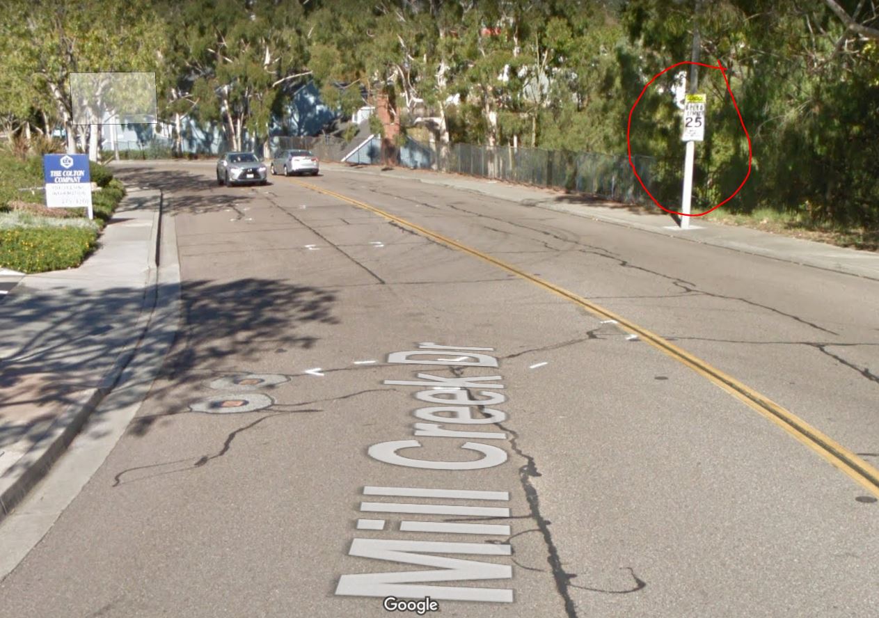 Also in Mill Creek Dr, while the speed limit is 30 mph, there is a school (New Vista School) at the end road and the speed limits drop to 25 mph. So don't forget to slow down when you see the school sign.